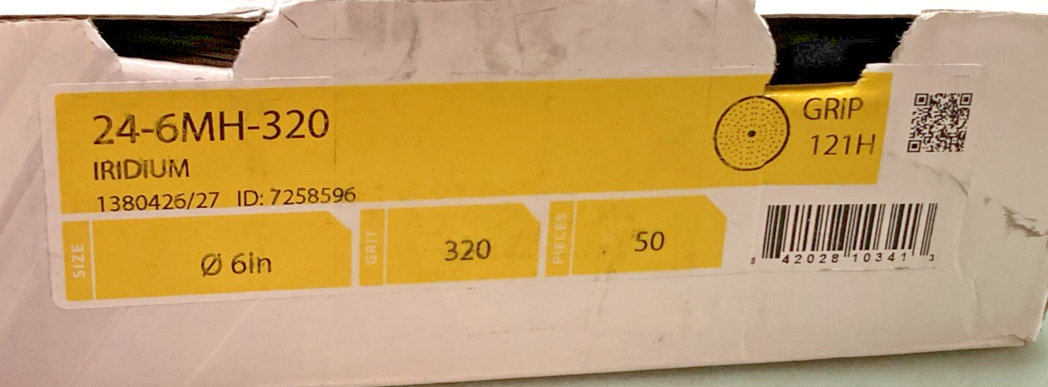 Pk 50 New Genuine Mirka 24-6MH-320 Iridium Grip 121H 6" 320 Sanding Disc