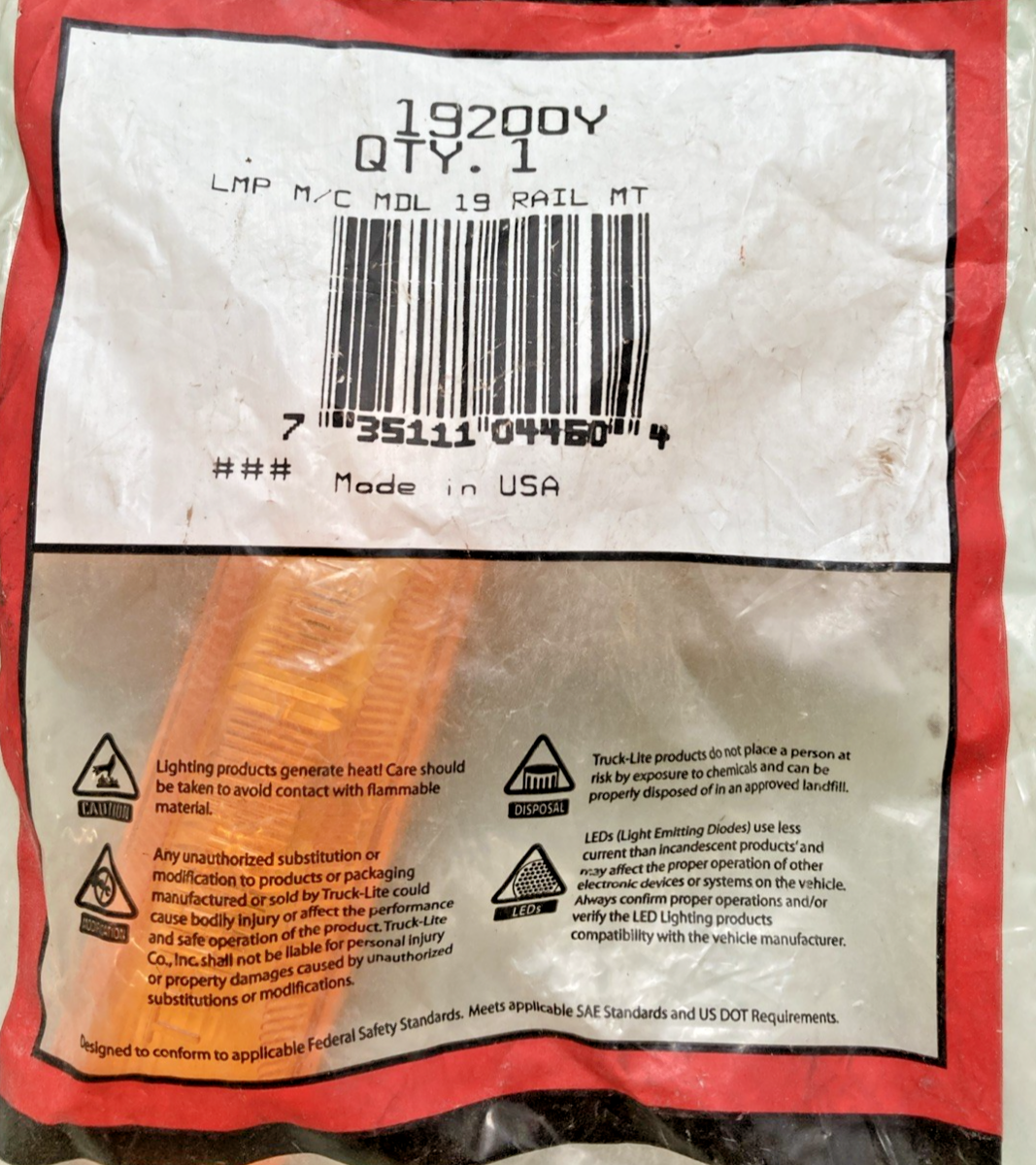 Qty 2 Genuine Truck-Lite 19200Y 19 Series, Base Mount, Incandescent Yellow Light