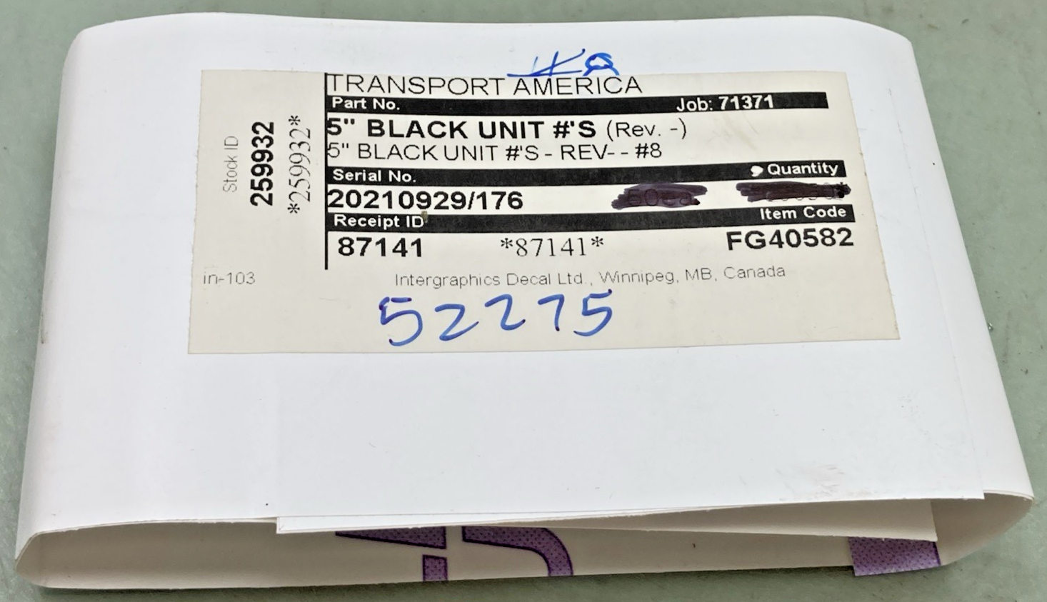 Qty 5 New Genuine Transport America FG40582 5" Black Vinyl Number 8